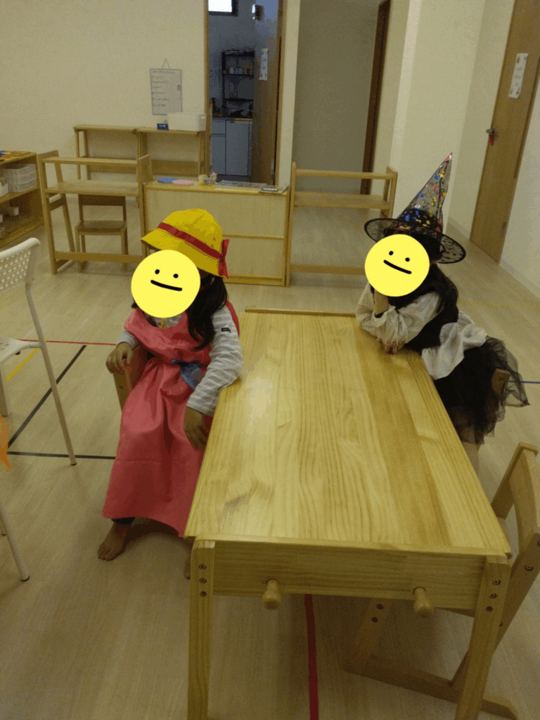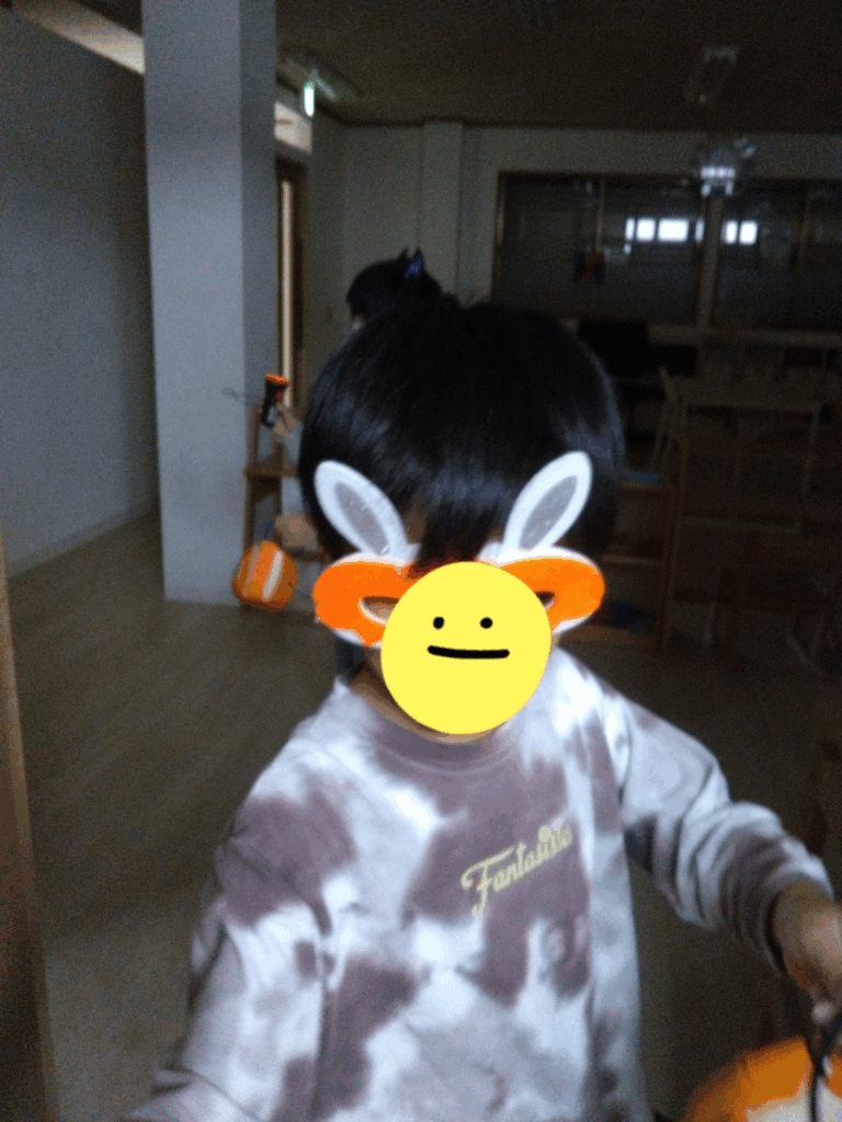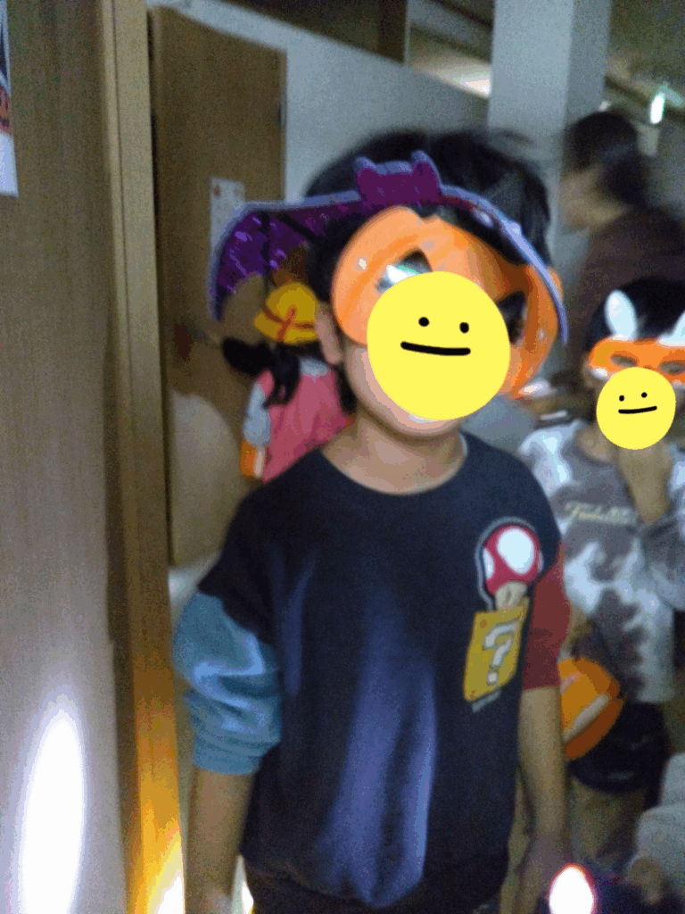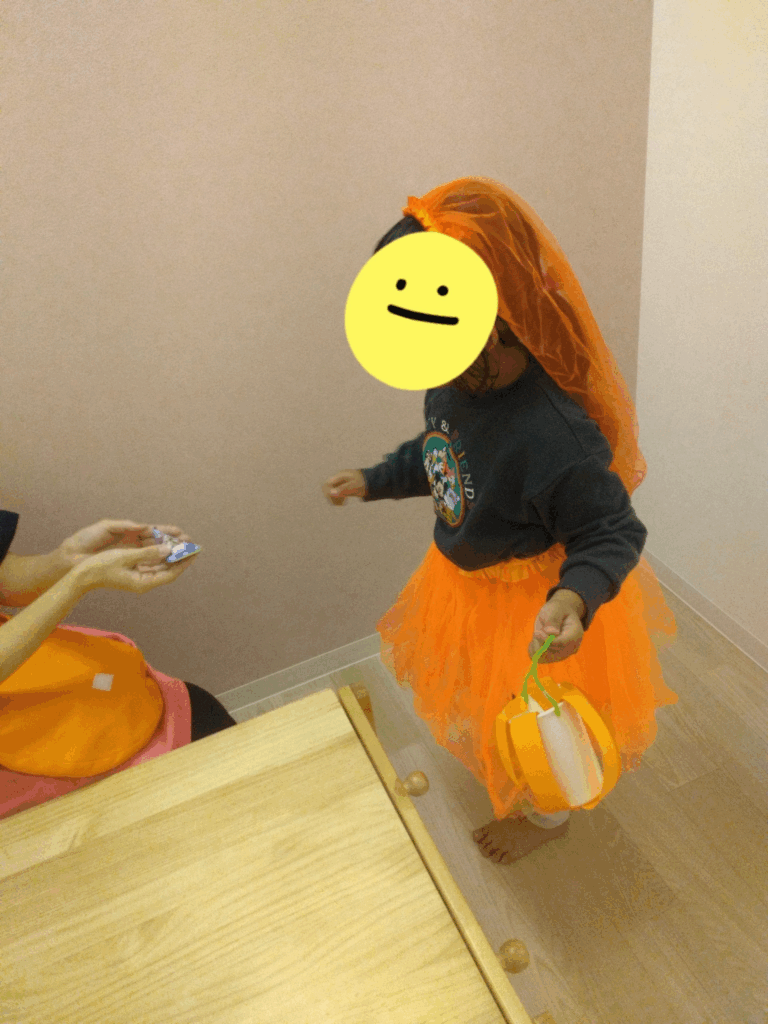 この日は、みんなでそれぞれが着たい衣装を選んで仮装をし、魔女やカボチャおばけからお菓子をもらいました。