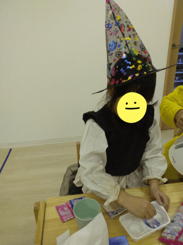 魔女になりきってネルネルしたり、好きなお菓子を選んで食べたりと、楽しい時間になりました。
